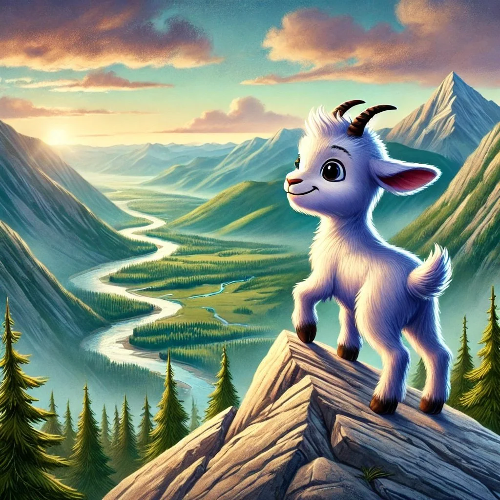 Milo the mountain goat had always looked up in awe at the towering mountain near his valley. Every morning, he gazed at its rocky slopes, dreaming of one day reaching the peak. His family often warned him, “It’s a hard climb, Milo. You’re still young, and the mountain is challenging.”