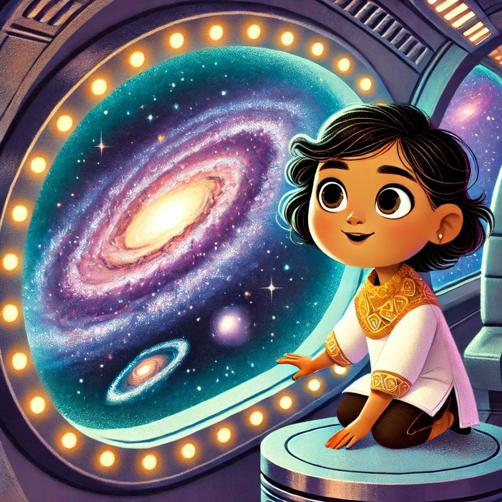 "Welcome, Lin," a smooth voice said. "You’ve been chosen for a special mission. We’re going on a journey to explore the galaxies!"